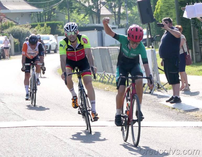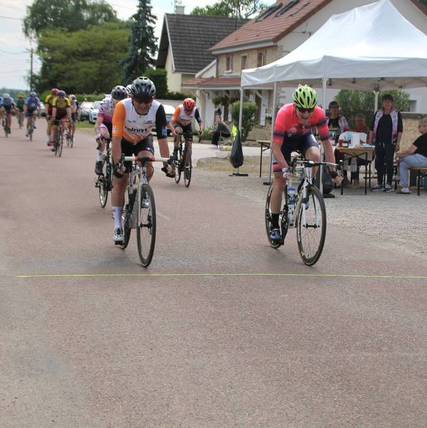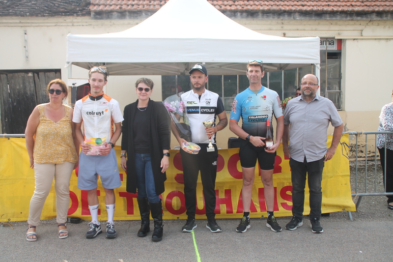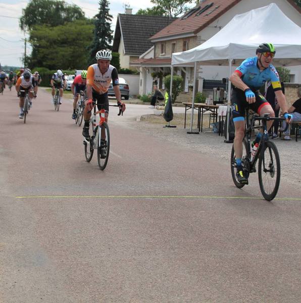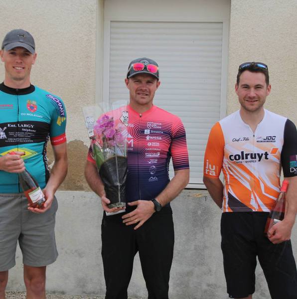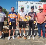 En 5 : magnifique triplé de nos coureurs, Patrick PARIS, Christophe ANCEAU et Micka SIRE. Malgré toutes les tentatives d'échappées, cette course s'est terminée au sprint, offrant à Micka sa première victoire de la saison. Bravo à lui ! Il est suivi par Christophe Anceau qui monte sur le podium pour la première fois, Patrick prend la marche sur la 3e place.