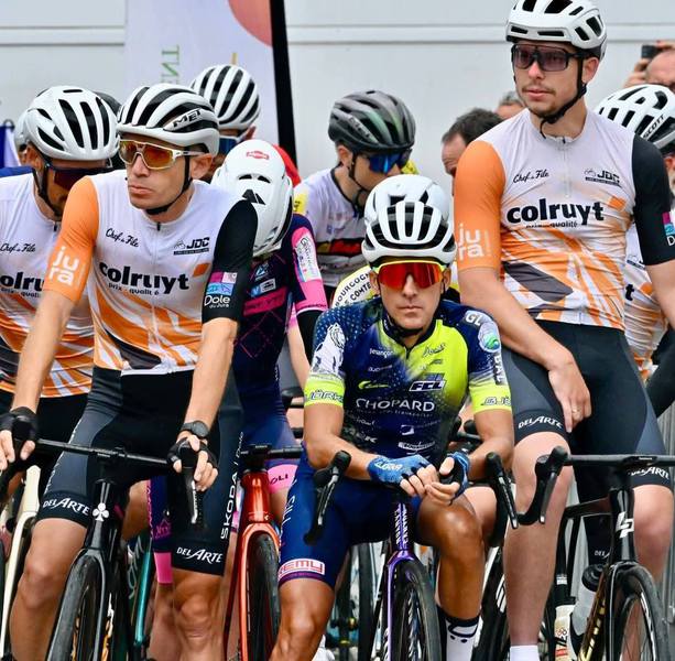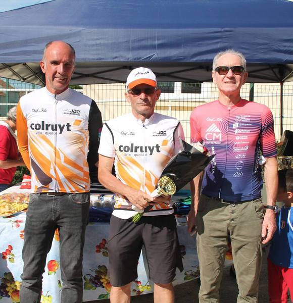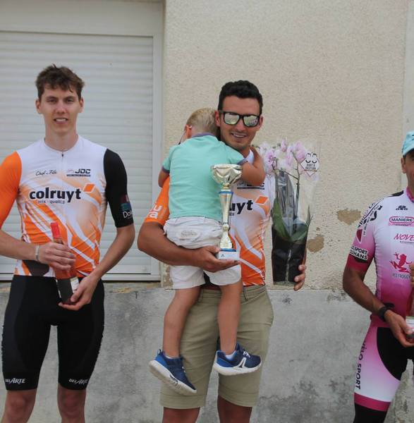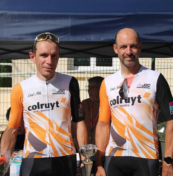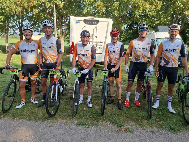 Bien vite, les Colruyt mettaient le feu et une échappée de 6 coureurs prenait forme avec en son sein 2 colruyt Bastien Franceschini et Yann Saillard. A la mi-course sur une accélération Bastien prenait quelques longueurs qui rapidement se transformaient en minutes. A l'arrivée, il l'emportait aisément sur un peloton regroupé où Olivier Constant arrachait une belle 3e place et Stéphane Saillard 6e. Les autres JDC terminaient pour la plupart au sein du peloton. Très beau comportement des nouveaux à savoir Yann (8e) et Steeve Bongain (12e).