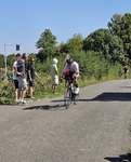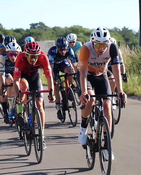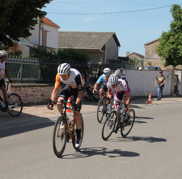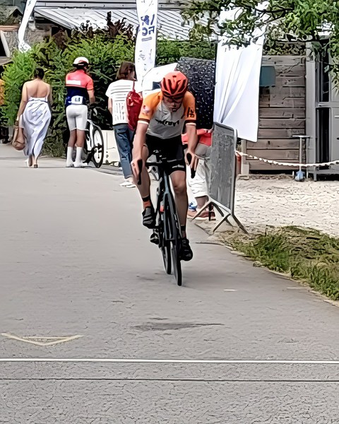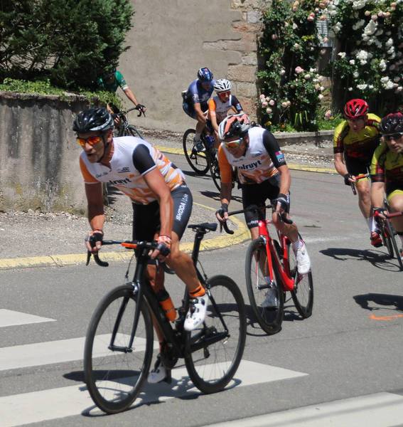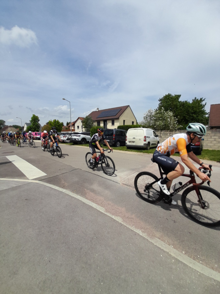 4 "orange" tous en 4e catégorie, étaient sur la ligne de départ pour 20 tours de circuit de 3 km. Le peloton restait groupé avec nos 4 représentants en son sein et allait se présenter pour un sprint massif final. Malheureusement une chute sévère en catégorie 5 a lieu et bloquait le passage des 4. Devant la gravité des blessés, l'organisation décida d'annuler la course des 4. Un "coup pour rien !!!"