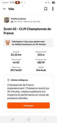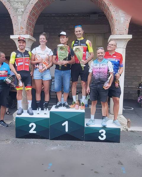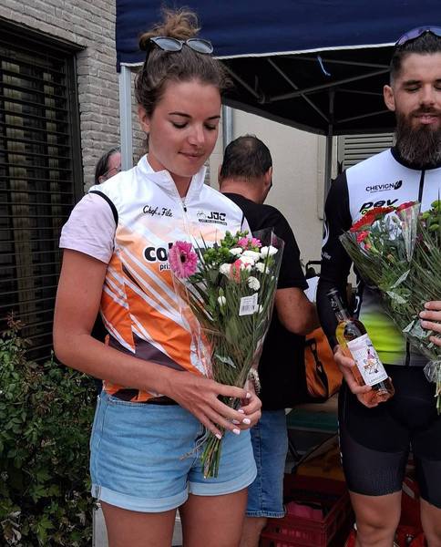 ➡️ Grosse perf pour Fanny lors de la Gentleman de St Martin en Bresse. Avec Mickaël, ils montent sur le podium ? en FSGT4 à 39,7km/h de moyenne ? 14ème équipe au scratch sur 47 ?