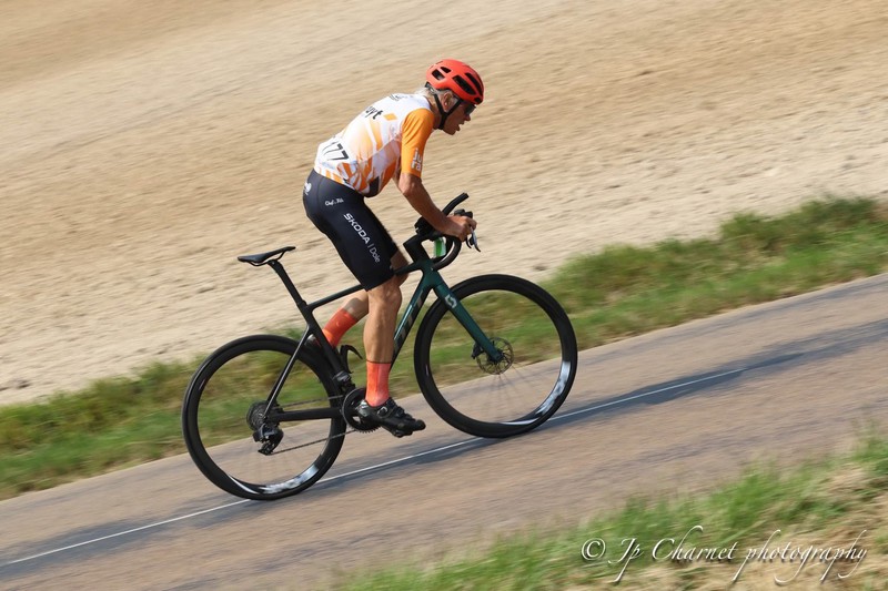 Seul engagé du JDC, Sylvère s'est rassuré sur un circuit vallonné. Il perd le contact avec le peloton seulement dans les 500 derniers mètres.