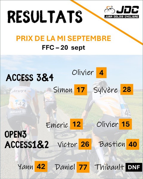 Des JDC à l'offensive et dans tous les groupes derrière l'échappée Mention spéciale à Emeric 1er Access2 ainsi qu'à Victor dans le groupe n°3 et enfin à Daniel dont c'était le retour dans