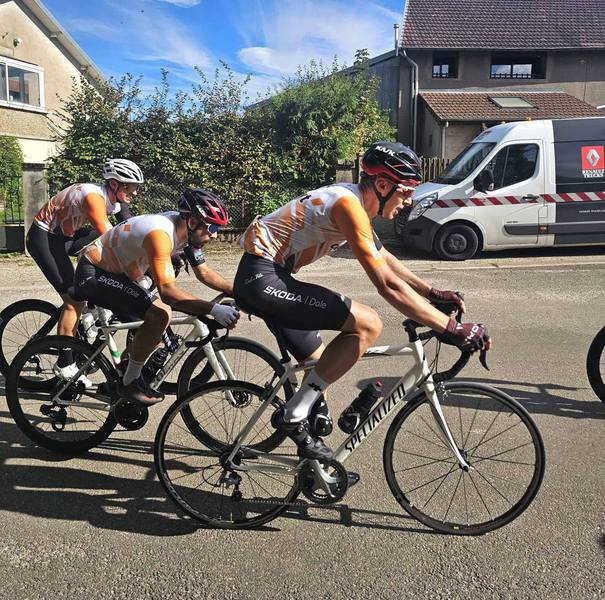 Parfaitement mis sur orbite par Bastien, Olivier prend la bonne échappée à 3. Derrière, gros travail collectif de nos « orange » Sylvain, Babas et Sylvère qui contiennent le peloton. Olivier fait 3.