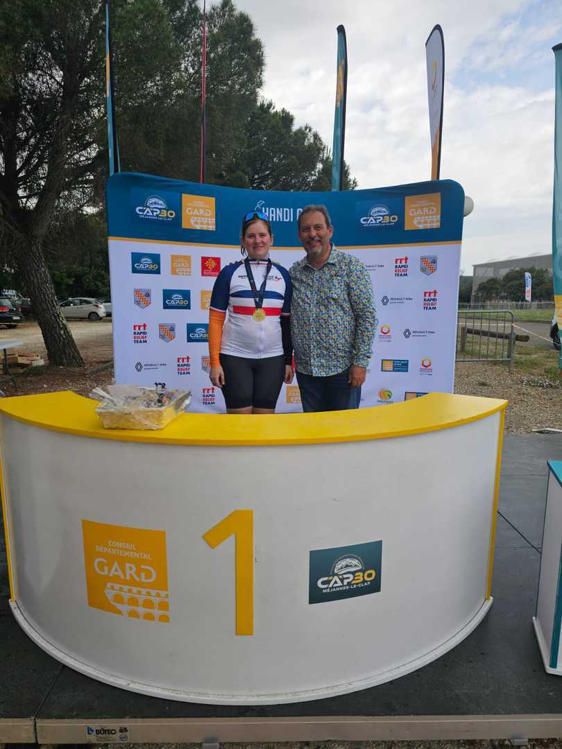 Laurence Mottas et Sylvain Chapeau ont participé au championnat national CLM UFOLEP à ROANNE. Très bon comportement de Laurence qui encore une fois échoue au pied du podium sur un championnat de France en terminant 4e à moins de 20 secondes de la 2e place. Quant à Sylvain, non préparé pour cette spécialité, termine 26e de sa catégorie.