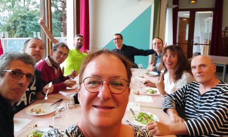 Le lieu d'hébergement luxueux semble convivial et chacun est heureux de partager des moments de récup' et de détente ! Véronique Paris, seule accompagnatrice, profite aussi de la belle météo, encourage et soutient le groupe dans... la voiture suiveuse !